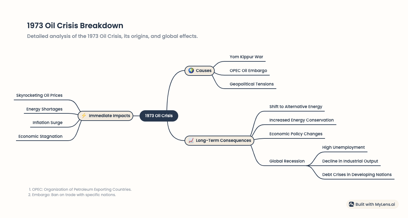 I asked MyLens to build a timeline of major economic crises with causes, policy responses, and outcomes. My prompt was: