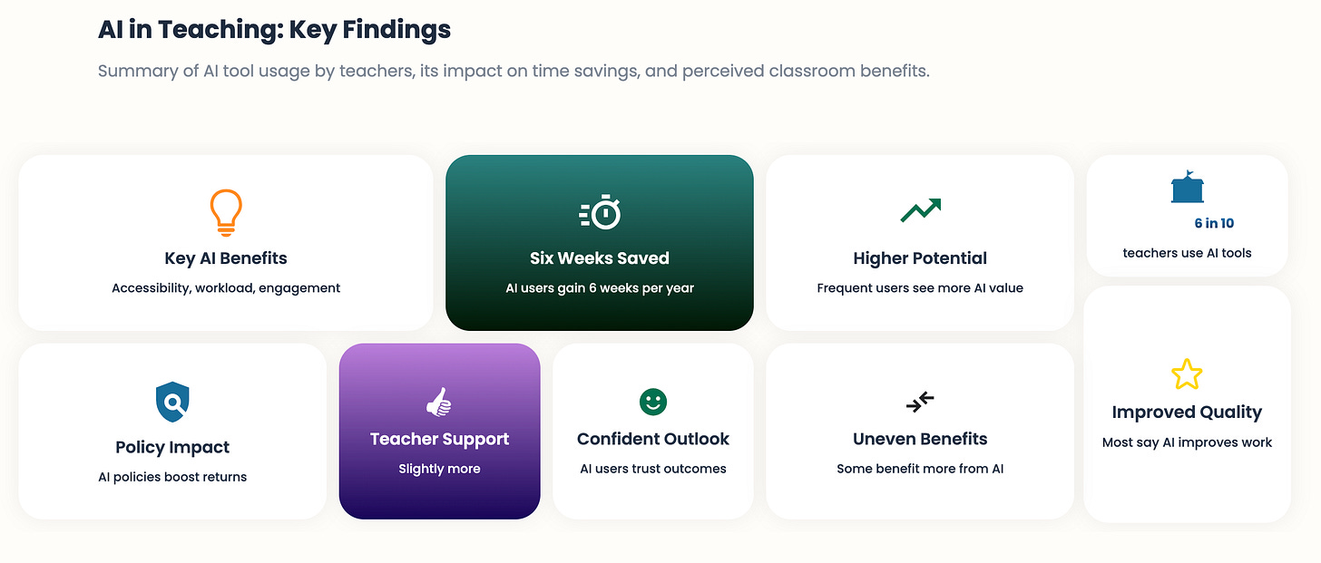 For this task, I uploaded a 20-page (3.4 MB) report from the Walton Family on AI use in schools. Here is what it created: