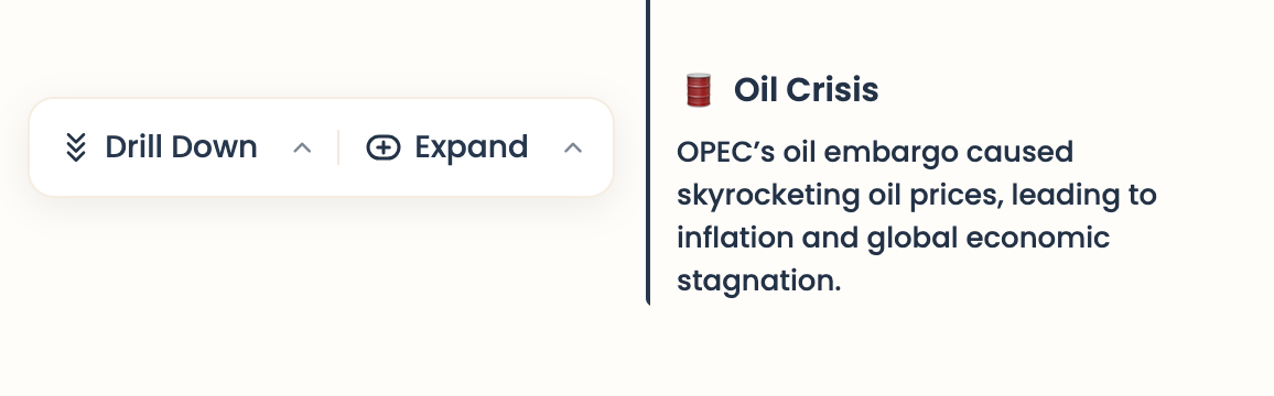 You can click on any milestone for more in-depth information. I clicked on “Oil Crisis” and this is what I see: